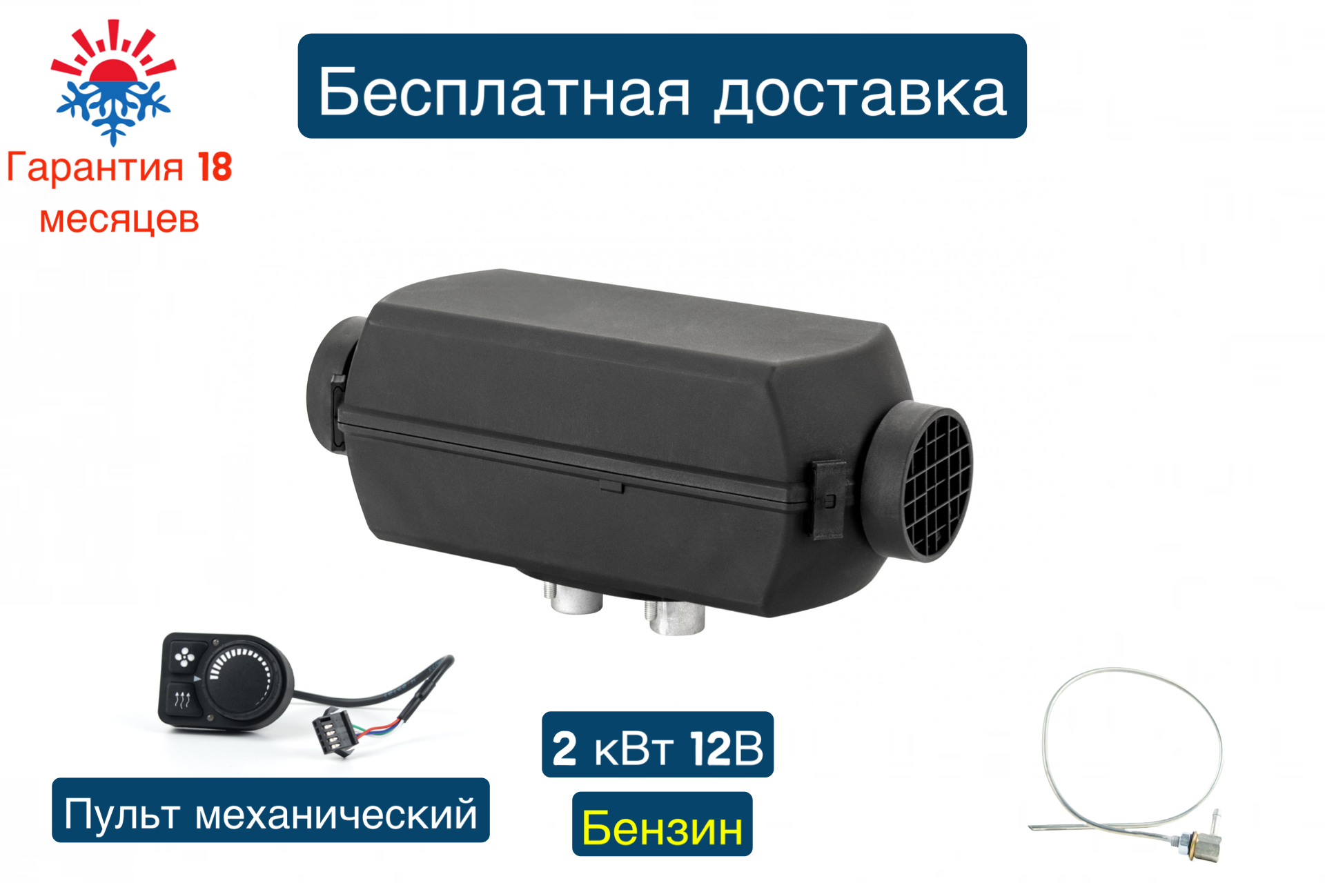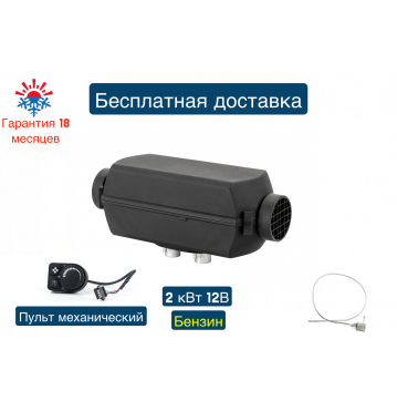 Отопитель воздушный бензиновый 2Б-12В-S (2 киловатта) Монтажный комплект с топливозаборником , пульт управления механический ПУ5